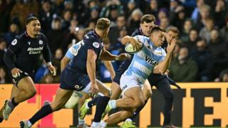 A long, loopy pass from Finn Russell was intercepted in the Argentine 22m and the Pumas raced up the field, only held up by illegal Scotland defence that saw Blair Kinghorn carded.