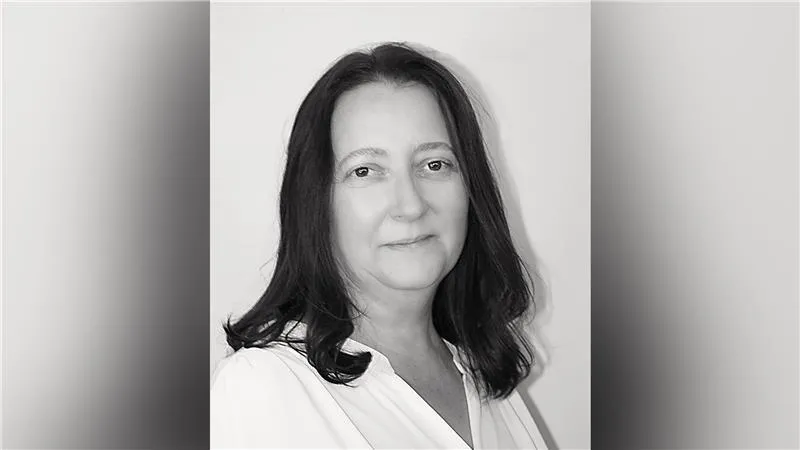 Andrew Palmer A black and white image of a woman with shoulder length brown hair and a white top.Andrew Palmer